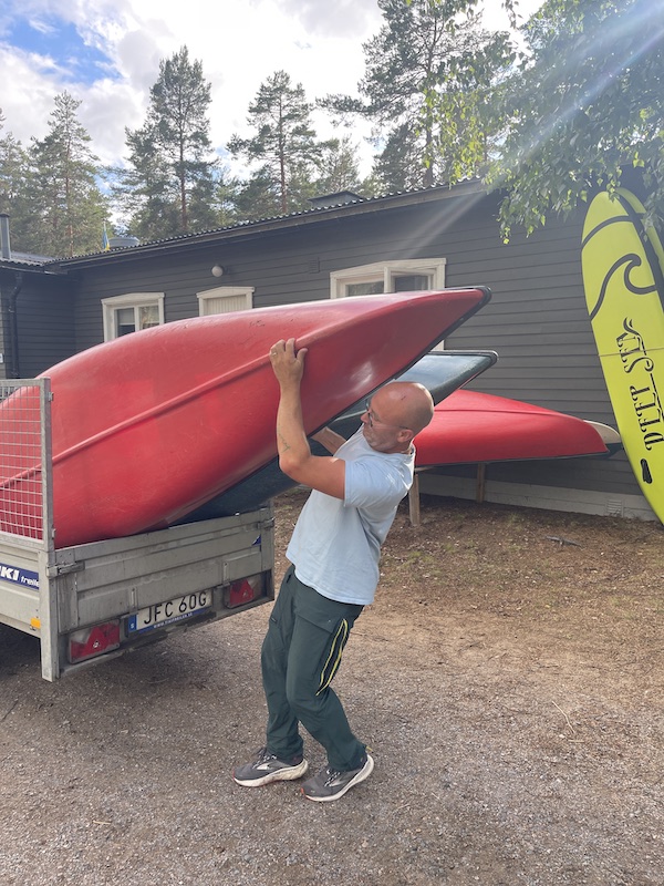 Na ruim een week kano’s wegbrengen en ophalen is het natuurlijk ook fijn als ik zelf de route ook een keer gezien heb. Een van de laatste avonden ga ik met Venry, de ouders van Roos en Eylin en de zusjes zelf ook de tocht kajakken. Volgende keer dit beter doen in het begin wanneer ik ga helpen, ben dan zelf beter op de hoogte van de tocht die ik ook aan de gasten moet uitleggen.