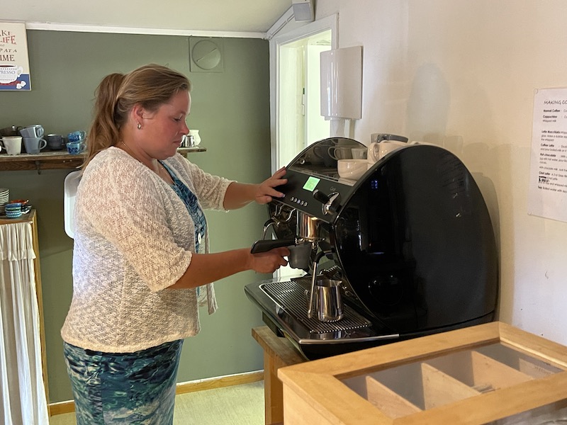 Miranda kan meehelpen in het sanitair en het restaurant. Ik besluit uiteindelijk om ook mee te helpen, omdat ze nog iemand zoeken voor het vervoer van de kano’s naar een riviertje en ze later weer op te halen bij het meer. Op de camping werken verschillende jonge vrouwen die meehelpen in het sanitair, restaurant, op de camping en die yoga geven. Tussen de middag eten we mee met de groep. Dick, een gepensioneerde man die hier acht weken staat, kookt voor het personeel en zichzelf elke dag een heerlijk gerecht.