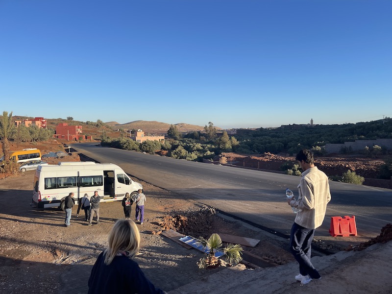 De volgende ochtend moeten we vroeg uit de veren. Even ontbijten en om acht uur vertrekt de bus weer om aan het einde van de middag in de woestijn aan te komen.