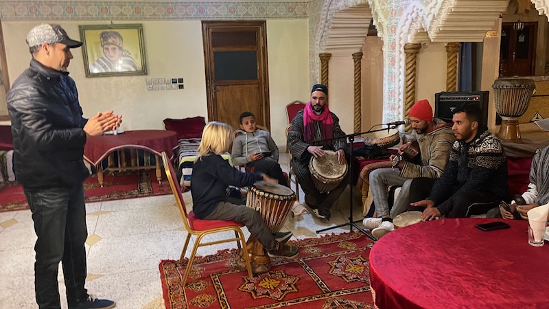Na de stop in de vallei rijden we door naar Tinghir. Dit is een plaats waar veel berbers wonen. Berbers zijn van oorsprong een reizend volk dat overal met hun dieren rondtrekt. Tegenwoordig zijn er veel berbers die zich ook vestigen op een vaste plaats.