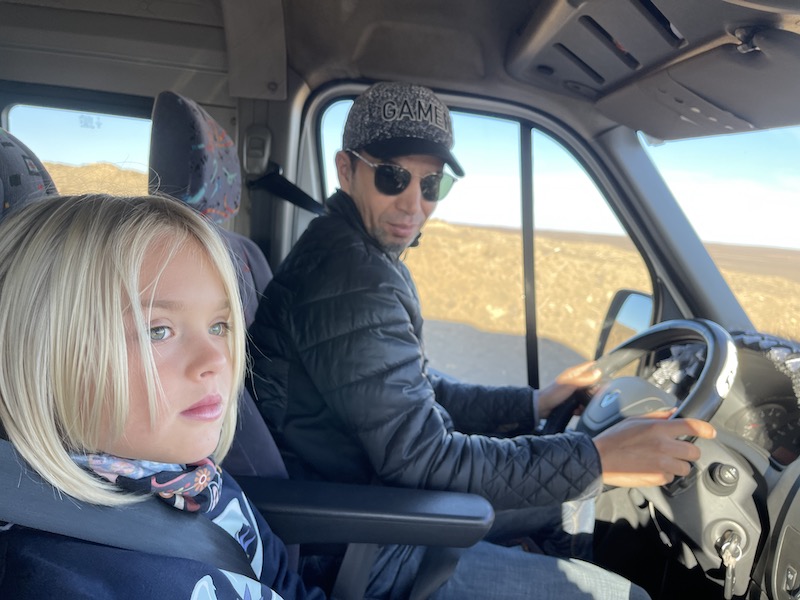 Uiteindelijk na een lange rit, bereiken we tegen het einde van de middag de woestijn. We zijn vlakbij de grens van Algerije. Wanneer je naar Google Maps gaat, zie je dat de woestijn niet echt groot is. De echte woestijn ligt nog veel verder naar het Oosten, wat niet weg neemt dat het hier in de zomer bloedheet wordt en nu in de nacht temperaturen tegen het vriespunt gehaald worden.