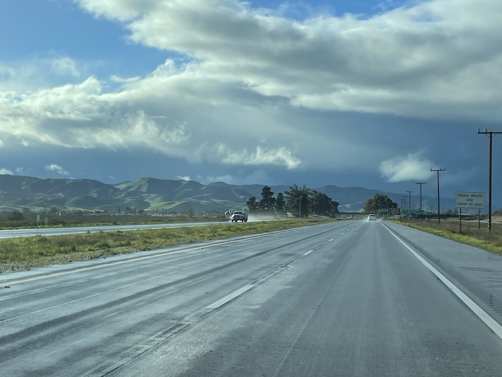 Het weer in California beloofde weinig goeds. Als we de weersverwachting mochten geloven werd het bijna apocalyptisch en zou het de ergste storm worden die California ooit had meegemaakt. Wegen die weg zouden spoelen, megaoverstromingen, etc. Gelukkig zijn wij wat gewend van de Nederlandse media die ook graag alles mag opblazen, dus eerst maar eens afwachten.