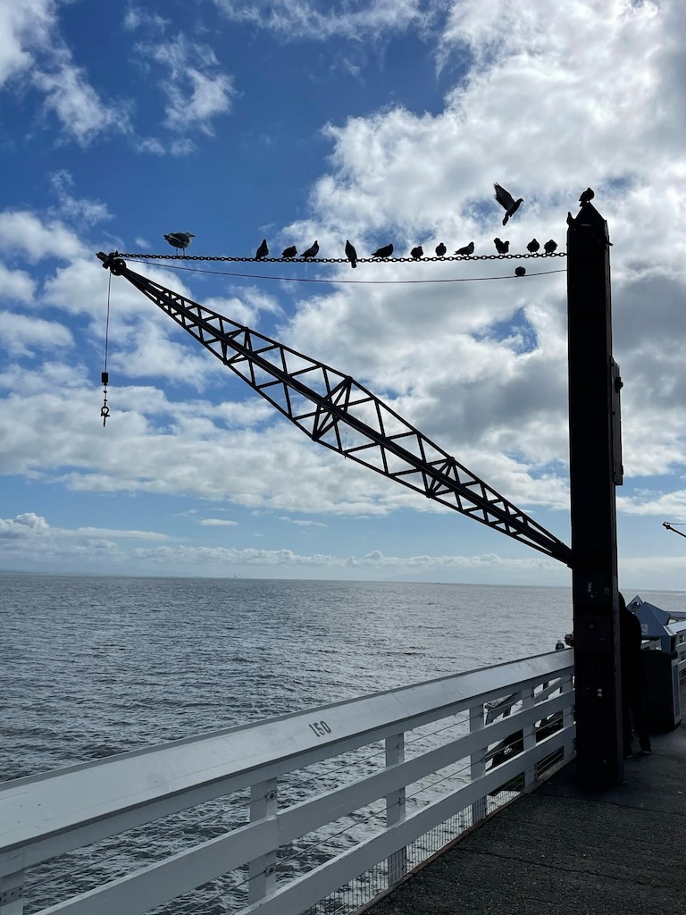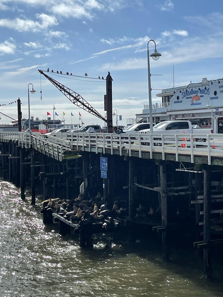 We brengen een bezoek aan de pier en raken de Grote Oceaan nog even aan. Zogauw San Francisco hebben verlaten reizen we meer het binnenland in en komen we niet meer bij de Great Ocean. De pier blijkt ook nog een mooie verrassing voor ons in petto te hebben.