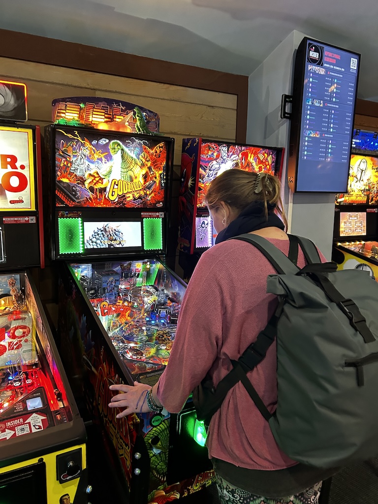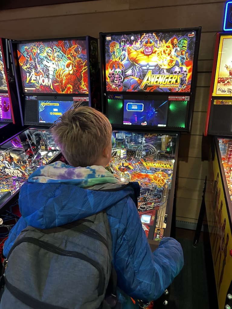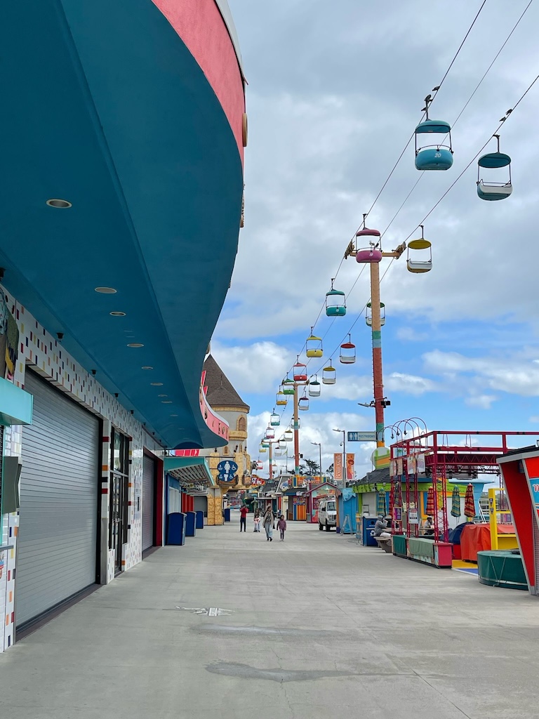 Er wordt veel gesurfd en langs het strand bevindt zich een mooie pier en een attractiepark. De laatste was vandaag helaas gesloten, behalve de speelautomatenhal. Die slaan we dan ook niet over.