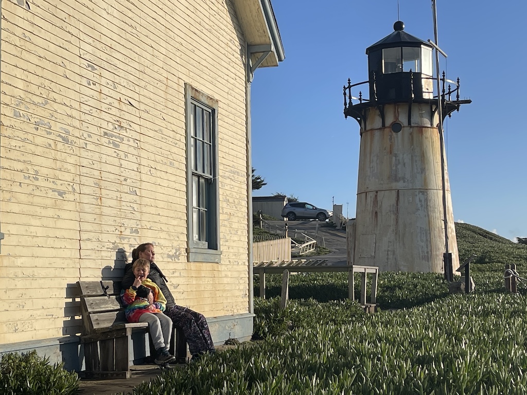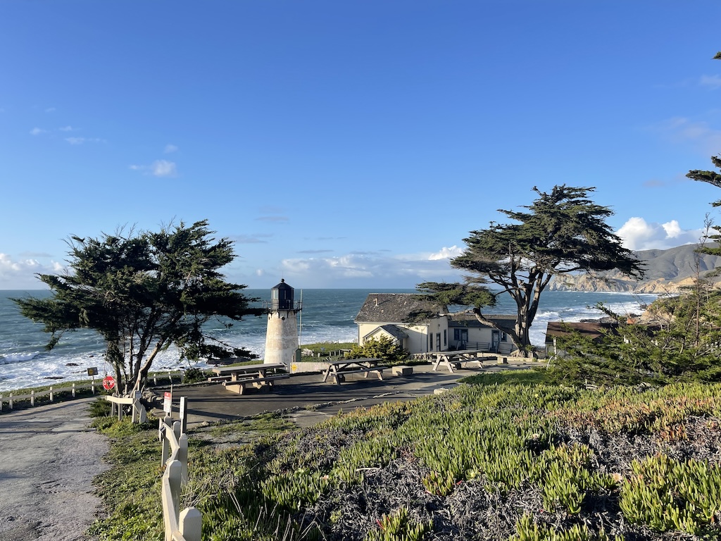 Vanavond slapen we in op een terrein met een vuurtoren op een klif. Het is al oud, maar schijnbaar echt de moeite waard. We kunnen toch pas morgen terecht bij onze housesit in Oakland. We rijden nu helemaal langs de kust richting ons hostel. Onderweg passeren we een andere vuurtoren.