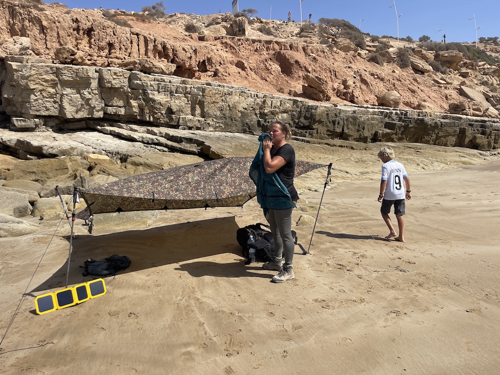 De hele tijd langs de zee lopen met deze temperaturen, dan is het best verleidelijk om nog eens de zee in te rennen. Op het heetst van de dag, besluiten Venry en ik dat dan ook te doen. Even lekker afkoelen. Niet al te lang, want de camping is ook nog zeker anderhalf uur lopen.