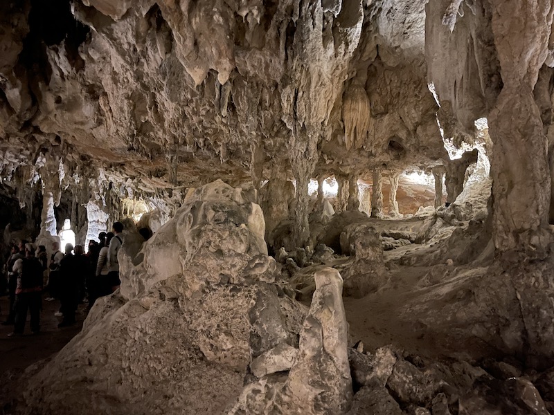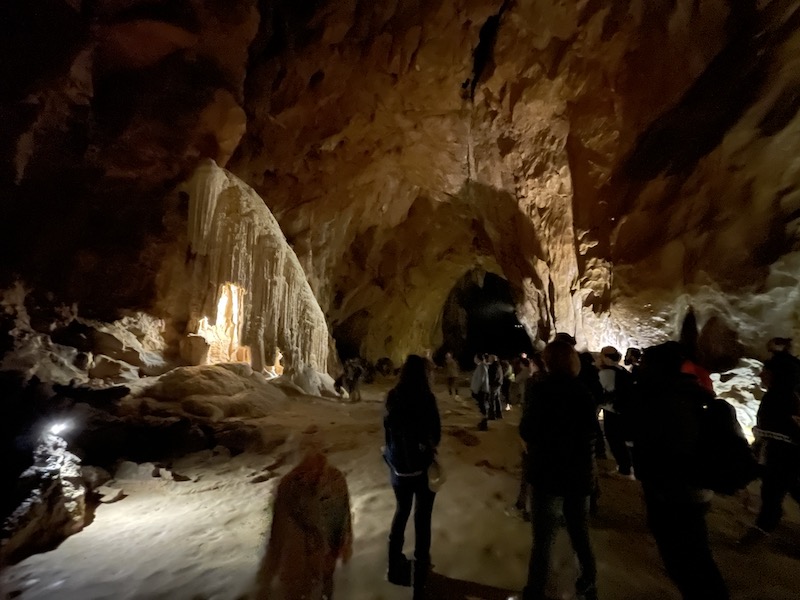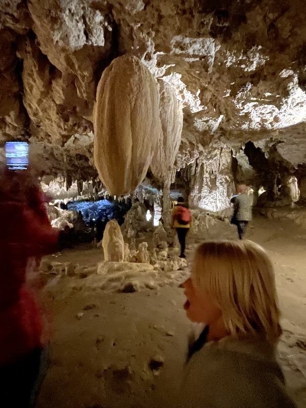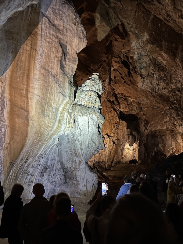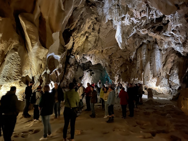 Het bezoek aan de grot duurt zo’n twee uur. Het is jammer dat het volledig in het Frans en wij het dus niet kunnen volgen. Aan de schoonheid van de grot en het ontstaan van de enorme ruimtes en de stalactieten en stalagmieten doet het geen afbreuk.